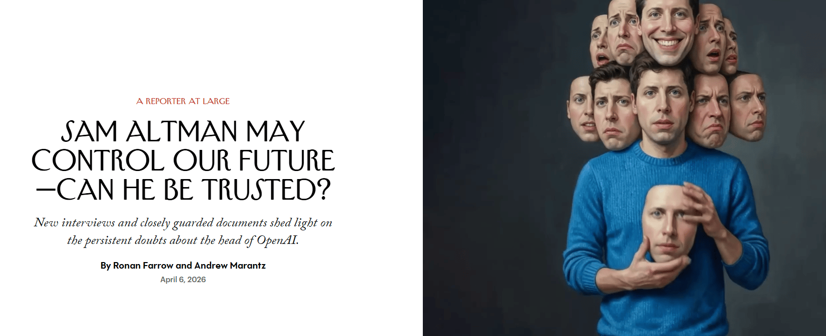 Ronan Farrow y Andrew Marantz acaban de publicar la investigación más profunda sobre el CEO de OpenAI. Entrevistaron a más de 100 personas, revisaron un memo secreto de 70 páginas del ex científico jefe Ilya Sutskever y 200 páginas de notas privadas de Dario Amodei (CEO de Anthropic, ex OpenAI).
